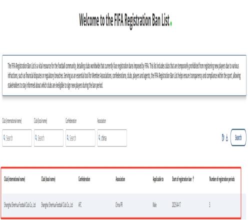 FIFA官方:上海申花自4月17日开始禁止转会注册,处罚期3个转会窗