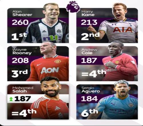 萨拉赫距离身前的鲁尼(208球)和凯恩(213球)并不遥远,有希望在本赛季完成超越。但距离英超历史射手王希勒(260球)则相差甚远。