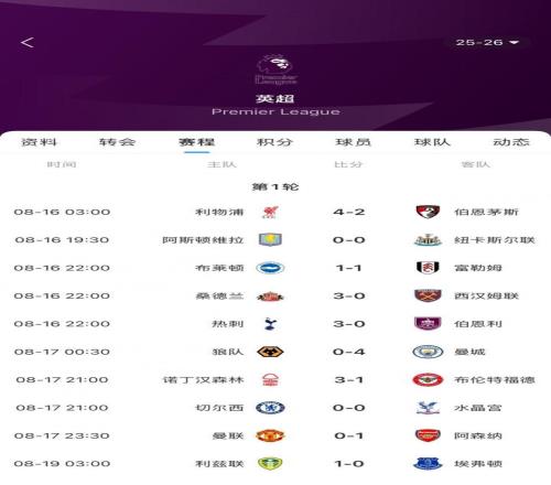 直播吧08月19日宣 25/26赛季英超首轮战罢,积分榜上,曼城大胜领跑,卫冕冠军利物浦和2支升班马在内的7支球队全取三分。 首轮取胜的7支球队:曼城、桑德兰(升班马)、热刺、利物浦(卫冕冠军)、诺丁汉森林、阿森纳、利兹联(升班马)。 英超首轮赛果↓ |