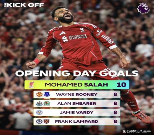 英超揭幕战进球榜 萨拉赫 (Mohamed Salah) 国籍:埃及 俱乐部:利物浦 进球数:10球 鲁尼 (Wayne Rooney) 国籍:英格兰 俱乐部:曼联 进球数:8球