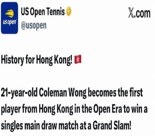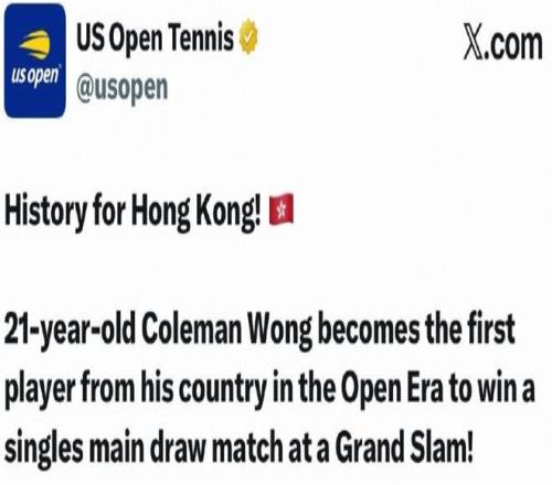 8月26日,美网男单正赛首轮,中国香港球员黄泽林3-0战胜科瓦切维奇,跻身次轮。这也是公开赛年代第一位收获大满贯正赛胜利的中国香港球员。美网官方赛后在祝贺其胜利时,称香港为“国家”,但在不久之后将“his country”修改为“Hong Kong”。 美网官方起初在社媒写道:“黄泽林成为第一名他的国家在公开赛年代取得大满贯胜利的选手。”但在不久之后,文案中的“his country”修改为了“Hong Kong”。 |