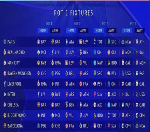 欧冠抽签:皇马战曼城利物浦!拜仁遇巴黎切尔西阿森纳,巴萨好签