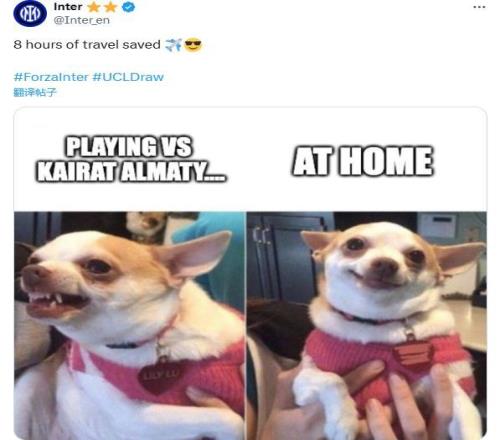 省下8小时旅程!国米晒表情包:抽到了凯拉特...但是主场