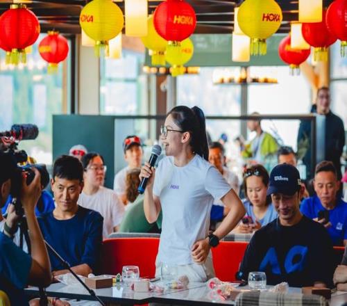 HOKA中国事业部总经理吴萧女士、HOKA中国越野精英队与跑者欢聚一堂
