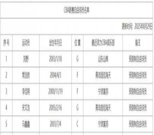 CBA官网更新联赛自由球员名单:新增5人常浩然在列