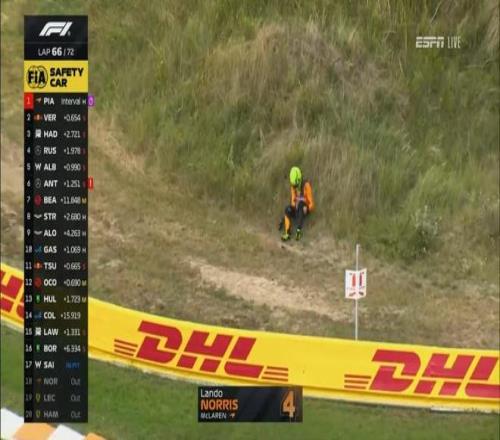 诺里斯赛车疑似发生燃油泄漏,在临近比赛结束时退赛