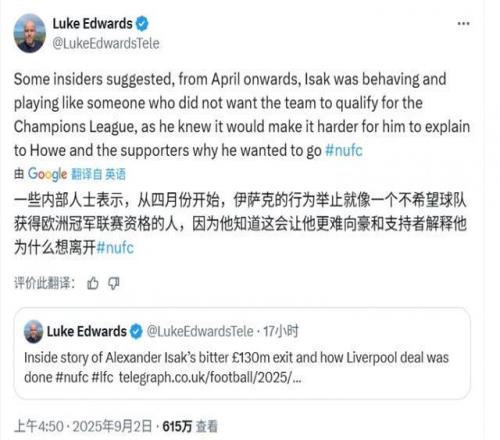 此前称伊萨克消极比赛!记者:伊萨克经纪公司考虑起诉纽卡跟队