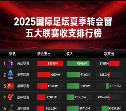 2025年足坛夏季转会窗,早在刚开始就能猜到这将是刷新纪录的机会,因为这是足球运动发展至今,在全世界人气进一步提升与商业运作能力增强的一种必然。 英超球队在今夏频频占据头条,最终总支出35.6亿欧元,甚至多于另外四大联赛总支出合计的33.5亿欧元,冠绝世界足坛! 意甲支出11.8亿欧元、德甲8.6亿欧元、西甲6.8亿欧元、法甲6.3亿欧元。 英超:你们一起上,我一个打四个!