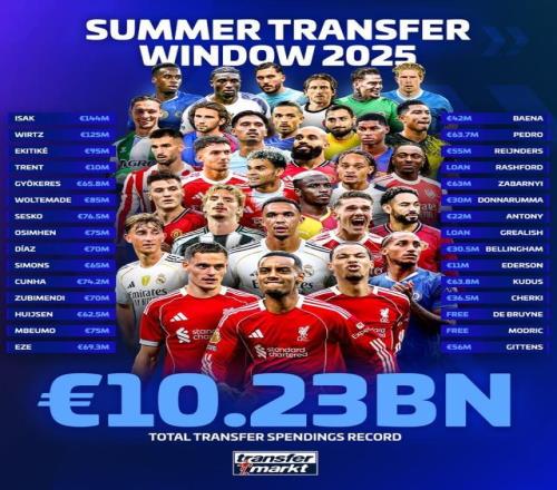 利物浦堪称今夏英超烧钱的领头羊,他们在转会市场上挥金如土,累计投入4.83亿欧元,在英超冠军班底的基础上进一步增强,其阵容深度和纸面实力令全欧洲为之胆寒。 先以1.25亿欧元签下勒沃库森中场维尔茨,9500万欧元签下法兰克福前锋埃基蒂克,最后时刻以1.44亿欧元拿下纽卡斯尔联当家射手伊萨克,两次打破英超转会费纪录,包揽今夏足坛转会榜前三!