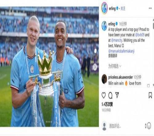 直播吧9月5日宣 不久前,哈兰德更新社交媒体,告别了加盟国米的前队友阿坎吉。