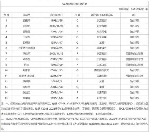 9月11日过后,CBA官方又更新了自由球员名单,目前有15人上榜,未来一段时间内有些人可能还会得到某个俱乐部的挑选,但多数可能没有机会在CBA打球了。这两年随着外援的涌入,本土球员机会受到压缩,一些边缘替补本来出场时间就短,现在更艰难了。