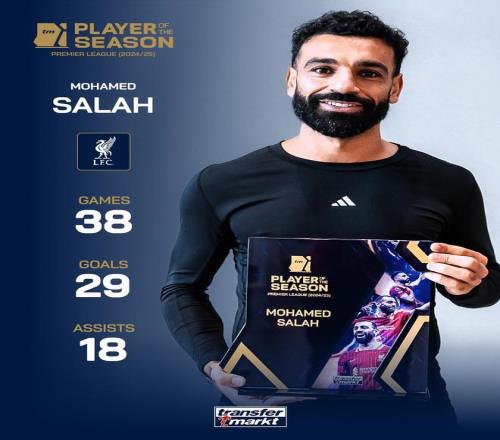 萨拉赫获评德转上赛季英超最佳球员,38场贡献29球18助