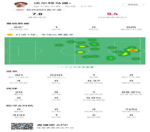 直播吧09月14日宣 英超第4轮,纽卡1-0战胜狼队,取得新赛季英超首胜,新援沃尔特马德打入制胜头球。 今夏夏窗最后时刻,纽卡压哨签下沃尔特马德,总价9000万欧,是沃尔特马德身价的三倍,这笔转会也遭到部分球迷的质疑。 本场比赛,沃尔特马德打入制胜球,争顶四次成功三次,对抗七次成功五次,传球成功率高达88.9%,还贡献了3次抢断。 独家看英超就在咪咕 |