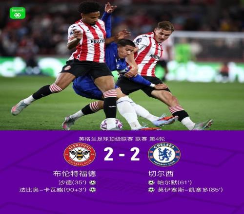 北京时间9月14日,英格兰足球顶级联赛第4轮,布伦特福德坐镇主场迎战切尔西。比赛进行至第35分钟,布伦特福德球员亨德森送出助攻,沙德推射破门,为主队取得领先。第61分钟,切尔西球员若昂-佩德罗送出精妙传球,帕尔默冷静破门,将比分扳平。第85分钟,切尔西球员莫伊塞斯-凯塞多远射得手,帮助球队反超比分。下半场补时阶段第3分钟,布伦特福德球员阿耶送出助攻,法比奥-卡瓦略推射破门,将比分最终锁定为2-2。全场比赛结束,双方握手言和。 关键事件 第35分钟,亨德森助攻,沙德长途奔袭冷静推射破门,切尔西0-1落后 第61分钟,寒王!恩佐传向禁区,帕尔默凌空抽射破门,切尔西1-1扳平 第85分钟,反超比分!加纳乔横传中路,凯塞多抽射破门,切尔西2-1领先 第90+3分钟,绝平,卡瓦略后点推射破门,布伦特福德2-2切尔西