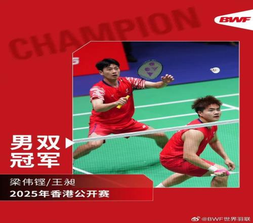 据人民日报消息,9月14日,世界羽联世界巡回赛中国香港公开赛展开5个单项决赛争夺。在刚刚结束的男双决赛中,中国队组合梁伟铿/王昶以总比分2-1战胜印度队组合兰基雷迪/谢提,夺得冠军。