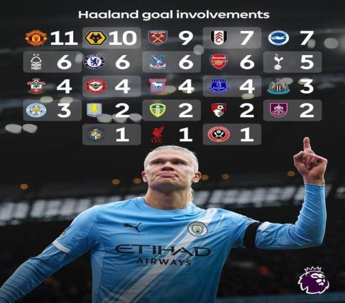 专打红魔!哈兰德对曼联已直接参与11球,比其他任何英超对手都多