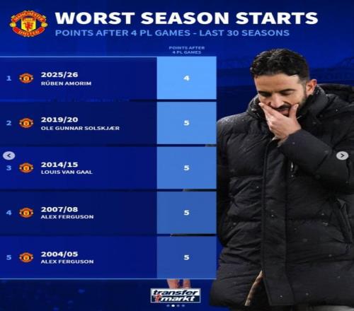 直播吧9月16日宣 英超第4轮战罢,曼联1胜1平2负积4分位列联赛积分榜第14。 德转列自阿莫林执教曼联以来各队在英超取得的积分情况,阿莫林带队31轮仅取得31分,仅高于上赛季三支英超降级队,距第1名31轮取得68分的利物浦相差37分。 新赛季联赛前4轮仅取得4分,创曼联过去30个赛季联赛最差开局。 曼联夏窗引援支出共计2.51亿欧,为历来最高投入。 |