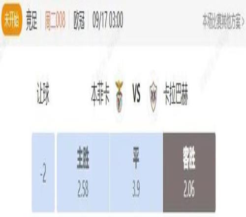 竞足 周二008 欧冠 本菲卡VS卡拉巴赫