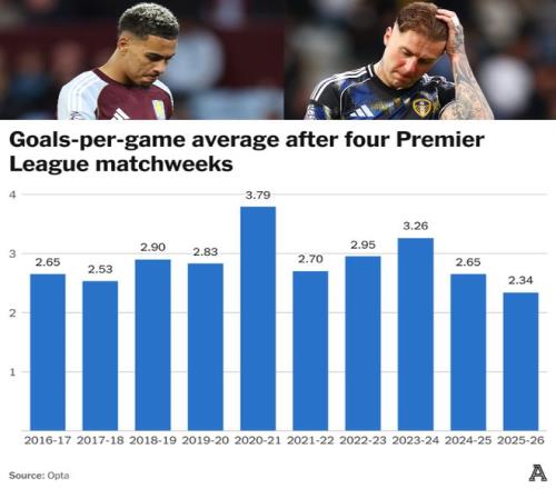 TA:英超的进攻质量在逐年下滑,场均进球数也在不断下降