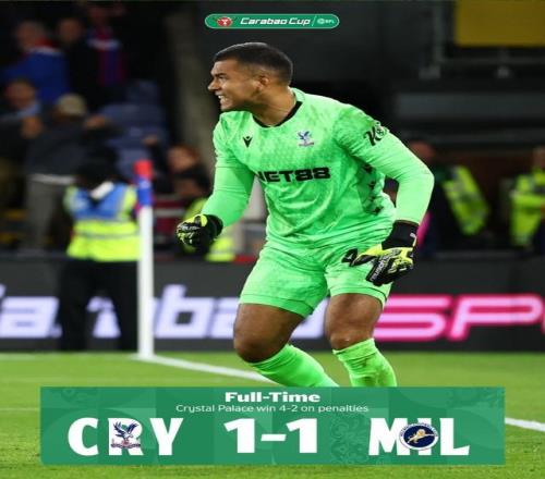 水晶宫联赛杯第三轮11战平米尔沃尔,通过点球大战晋级