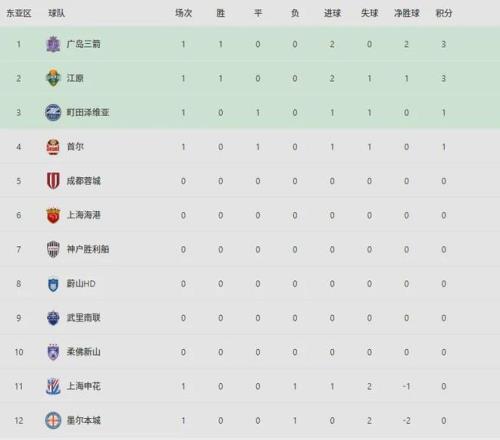 随着申花队12,广岛三箭20,亚冠积分:中超第3排名倒数