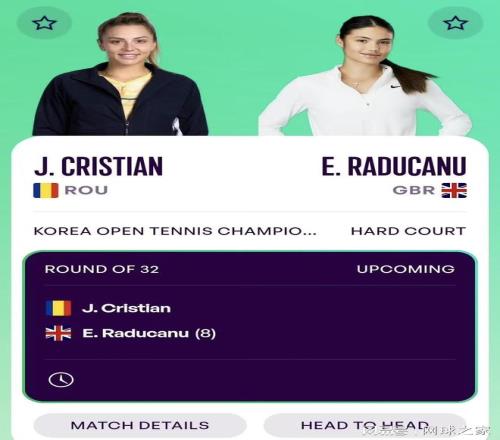 拉杜卡努将在不早于北京时间今天下午16:30开启首尔站的首秀,对手是罗马尼亚选手克里斯蒂安,一名非常危险的球员,祝艾玛在首尔站取得好成绩,加油!(来源:网球之家 作者:Mei )