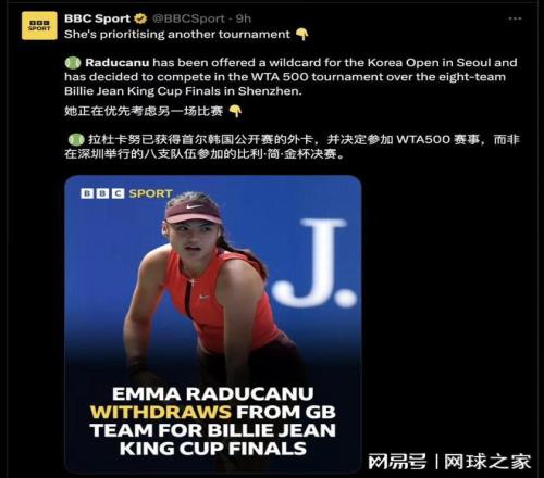 2025年9月6日,英国网球新星艾玛·拉杜卡努宣布退出9月16日-21日在深圳举行的比利简金杯总决赛,转而持外卡参赛同期开赛的WTA500首尔站赛事。这一决定在英国引发轩然大波,许多球迷和媒体批评她“将个人利益置于国家荣誉之上”。然而,近日拉杜卡努的导师、资深网球教练马克·佩奇公开为其辩护,强调这一选择是“基于职业长远发展的理性决策”。