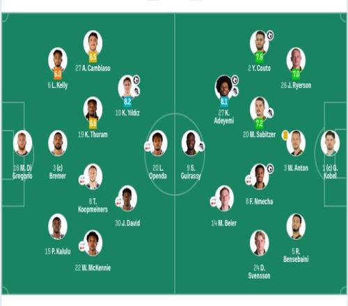 尤文图斯首发:16-迪格雷戈里奥、22-麦肯尼(60’25-马里奥)、3-布雷默、6-凯利、15-卡卢卢、8-库普梅纳斯(71’17-阿季奇)、19-凯夫伦·图拉姆、27-坎比亚索、10-伊尔迪兹、30-戴维(60’9-弗拉霍维奇)、20-奥蓬达(69’5-洛卡特利)。