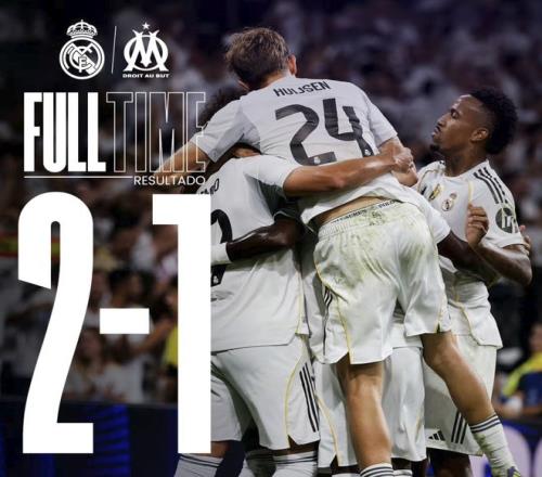 比赛的第22分钟,马赛利用反击机会打进1球,格林伍德助攻小维阿劲射得分。此后罗德里戈在禁区内被放倒,皇马获得点球,姆巴佩将球罚进,皇马扳平比分。来到下半场,卡瓦哈尔在第72分钟吃到红牌被罚下,之后维尼修斯为皇马造点,姆巴佩点射双响,格林伍德补时阶段错失机会,皇马2-1险胜马赛。