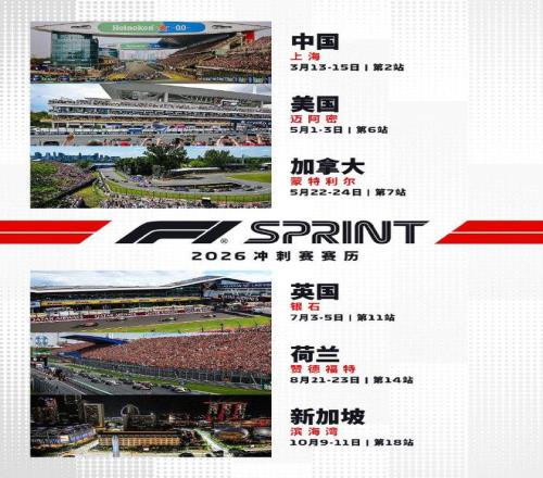 F1官宣2026赛季冲刺赛赛程,中国大奖赛将再次举办冲刺赛