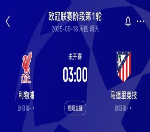 2025/26赛季欧冠首轮今夜继续!周四凌晨12支球队出战,不乏拜仁vs切尔西、利物浦vs马竞的强强对话。 03:00 利物浦vs马德里竞技 夏窗标王伊萨克有望在本场比赛迎来利物浦生涯首秀,利物浦坐镇安菲尔德,能否拿下对马竞的四连胜? 03:00 拜仁慕尼黑vs切尔西 两队时隔5年欧冠再度相遇,是开季全胜的拜仁再露獠牙,还是切尔西报5年前一箭之仇? 03:00 巴黎圣日耳曼vs亚特兰大 登贝莱、杜埃等人伤缺,K77出战成疑,欧冠卫冕冠军新赛季起航遭遇“真蓝黑”的挑战。 03:00 阿贾克斯vs国际米兰 上届欧冠亚军国米新赛季开局不利,意甲两连败后3轮仅积3分,主帅齐沃率队战旧主将全力争胜。 独家看英超就在咪咕 |