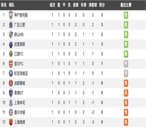 亚冠精英联赛首轮综述:中超全军覆没,神户吉达国民领跑积分榜