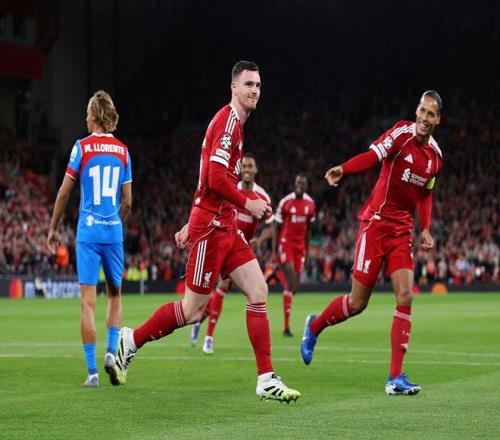 此役,利物浦在主场迎来新赛季首场欧冠比赛,红军取得不错的开局!开场仅4分钟,萨拉赫主罚的任意球打在罗伯逊弹入球门,此球算罗伯逊的进球,因此罗伯逊时隔6年在欧冠赛场再次收获进球,利物浦1-0领先马竞。