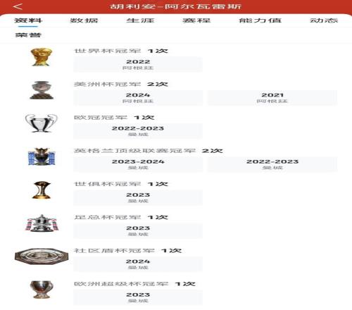 自2017年从河床出道成为职业球员以来,阿尔瓦雷斯此前每个赛季都能拿到冠军,7个赛季在俱乐部和国家队共拿到17座冠军奖杯。