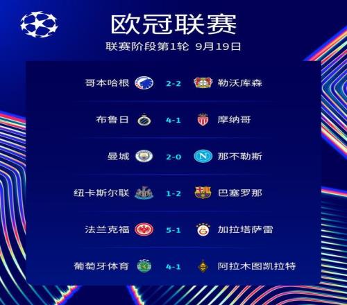 北京时间9月19日凌晨,25-26赛季欧冠联赛第1轮继续打响,上演多场焦点对决。 这一夜,巴塞罗那和曼城两队均收获新赛季欧冠开门红,今夏从曼联租借至巴萨的拉什福德上演梅开二度踢疯了! 曼城 2-0 那不勒斯 新赛季开打后,曼城还未在英超步入佳境,而上赛季意甲冠军那不勒斯依旧高居联赛榜首,哈兰德、福登、B席此战对上了霍伊伦、麦克托米奈和德布劳内。 瓜迪奥拉对弈孔蒂,本场赛前的重要焦点,莫过于今夏告别曼城的德布劳内重返曼城主场! 第21分钟,迪洛伦佐踢倒哈兰德,经VAR介入后主裁判给出红牌,那不勒斯只能以10人应战! 第26分钟,那不勒斯突然进行换人,德布劳内竟被换下,乌拉圭后卫马蒂亚斯-奥利韦拉上阵。 第56分钟,曼城组织攻势,福登巧妙挑传,哈兰德跟进头球得分,曼城打破僵局,1-0领先! 哈兰德成功攻入个人欧冠生涯第50球,成为欧冠史上首位有50粒欧冠进球的00后球员,在欧冠历史射手榜上追平亨利并列第9! 随后第65分钟,多库冷静过人小角度破门,曼城9分钟2球,2-0! 全场比赛结束,曼城2-0击败10人那不勒斯,战胜意甲联赛领头羊,成功取得新赛季欧冠开门红! 纽卡斯尔联 1-2 巴塞罗那 在经历夏窗头号前锋伊萨克出走后,埃迪-豪执教的纽卡开局难言顺利,而欧冠赛场同样是他们想要突破的赛场,埃兰加、戈登和巴恩斯组成进攻三叉戟。 相比之下,作为上赛季西甲冠军的巴萨延续强劲表现,此番弗里克率队远征信心满满。莱万单箭头突前,身后是拉什福德、费尔明和拉菲尼亚。 上半场双方互有攻守,试探对方底色未改写比分。进入下半场易边再战,巴萨主动打破僵局。 比赛第58分钟,孔德右侧送出传中,拉什福德跃起头球破门,上演滑跪庆祝,巴萨取得领先,0-1! 这粒进球,不仅是拉什福德加盟巴萨后的首粒进球,更就此打破了长达四年的欧冠进球荒! 第67分钟,拉什福德再次展现超强状态,在禁区外得球后轰出一记爆射破门,上演9分钟梅开二度,比分0-2! 第90分钟,墨菲右侧传中,戈登跟进抢点破门,纽卡终于扳回一球,1-2! 全场战罢,巴塞罗那客场2-1战胜纽卡斯尔联,迎来新赛季欧冠开门红。 27岁的拉什福德当选全场最佳球员,本场2次射正转化为进球,成为巴萨第一位在欧冠客场首秀上演梅开二度的球员,C罗的曼联鱼缸论含金量还在上升! 至此,本赛季欧冠联赛阶段第1轮第3天的6场比赛战罢:哥本哈根2-2勒沃库森、布鲁日4-1摩纳哥、曼城2-0那不勒斯、纽卡斯尔联1-2巴塞罗那、法兰克福5-1加拉塔萨雷、葡萄牙体育4-1阿拉木图凯拉特。 第1轮过后,欧冠联赛积分榜更新,法兰克福以净胜球优势领跑,身后是身后是巴黎、布鲁日、葡萄牙体育、圣吉罗斯联合、拜仁慕尼黑、阿森纳、国际米兰! |