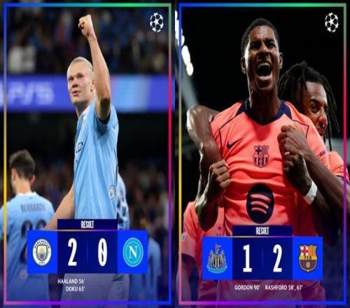 21和20!巴萨欧冠开门红!拉什福德梅开二度,曼城击败意甲冠军