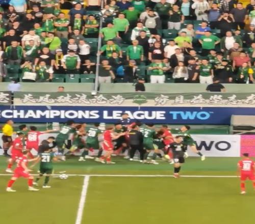 国安亚冠赛爆发冲突,河内队球员挑衅国安队员与球迷,王子铭和对方球员被出示黄牌2比2战平