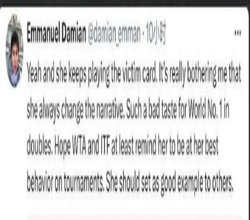 “你只适合炸鸡。” (评论来自推特) “她太烦人了,不喜欢这顿饭直接离开餐厅走人就是了,没人逼你吃青蛙!她需要尊重当地文化,因为她这是在别人的国家。” (评论来自推特) 还有一些网友,想起了汤森德一个月前跟拉脱维亚名将奥斯塔彭科(Jeļena Ostapenko)发生的美网赛场骂战。 当时双方为一记擦网球发生争执,奥斯塔彭科当场怒斥汤森德:“没人品,没教养!”(原话:No class and no education )。 (奥斯塔彭科怒斥汤森德) 赛后汤森德指责,奥斯塔彭科对身为黑人的她说“没教养”这种字眼,是妥妥的“种族歧视”。 说白了,她打出了“Race card”,种族牌,开始拼buff了。 而奥斯塔彭科身为白女,输得一塌糊涂,最终迫于舆论压力不得不发文公开道歉。 (奥斯塔彭科发文道歉) 现在回头再看,奥斯塔彭科这话一语成谶。 去其他人的国家,不尊重其他人的文化,“没教养”这三字简直不要太合适。 如今,网友提到了汤森德这一个多月里的“双标”表现。 “讽刺的是,她将一名拉脱维亚球员的言论曲解为’种族主义’,还告诫奥斯塔彭科需要’明白她的话在美国意味着什么’……可此时她自己却在冒犯所在国的文化。这种双标真是棒棒哒~” (评论来自推特) “是啊,她还一直打受害者牌。最让我反感的事她总扭曲事实。作为双打世界第一,她的品味实在太差了。希望WTA和ITF至少能提醒她在赛事中注意言行举止。她本该为他人树立一个好榜样。” (评论来自推特) “她这辈子都洗不掉’没教养’的恶名了。” (评论来自推特) “真正的虚伪。” (评论来自推特) 而在汤森德的老家,美国媒体则评价汤森德对中餐的吐槽,反映的是不少美国人骨子里对中餐“便宜,脏,差”的刻板印象。 或许是注意到了外界的激烈反应。 9月17日,汤森德赶紧发了一个道歉视频。 在视频里,她称自己在中国“度过了无比美妙的时光”,之前的言论完全不能代表真实感受。 “我真诚道歉,没有任何借口,也无法用言语辩解。我会做得更好。” “作为职业运动员,能周游世界体验文化差异,这也是我热爱这项运动的原因之一。” (汤森德发道歉视频) 无知不是无礼的挡箭牌,外国人没吃过海参、牛蛙,不敢吃,谁都能理解,但是专门发视频吐槽——“吐槽”俩字甚至都轻了——就是不尊重当地文化。 所以汤森德的道歉会不会被接受,那真是不好说喽..... Ref: https://people.com/taylor-townsend-apologizes-calling-chinese-food-crazy-after-criticism-11811809 https://www.nytimes.com/athletic/6636680/2025/09/17/taylor-townsend-apology-chinese-food/ |