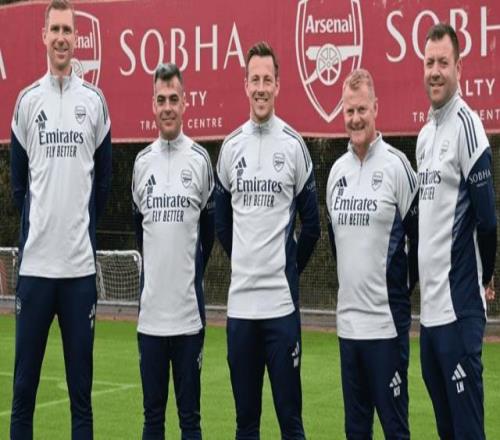 直播吧9月19日宣 阿森纳官方消息,大卫-霍斯曼(左起第二)出任俱乐部职业发展阶段精英球员发展教练。