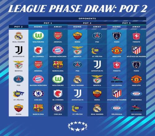 里昂女足:沃尔夫斯堡女足、阿森纳女足、圣珀尔滕女足、尤文女足、马竞女足、曼联女足