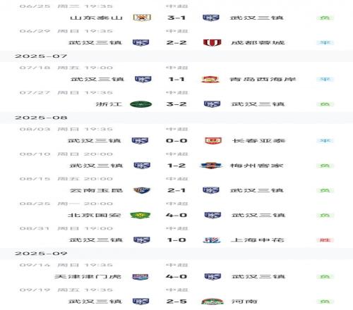 一泻千里!武汉三镇2场比赛丢9球,近11轮中超仅对申花取胜
