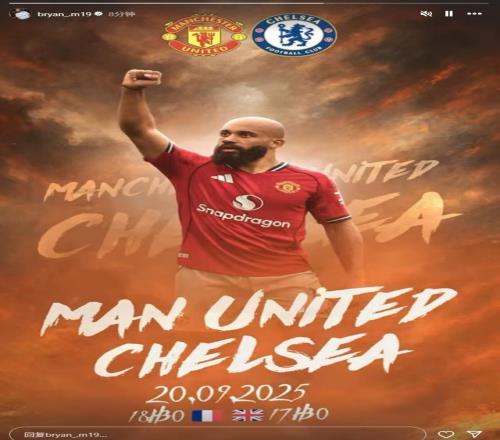 姆伯莫社媒晒个人海报,预热曼联主场迎战切尔西