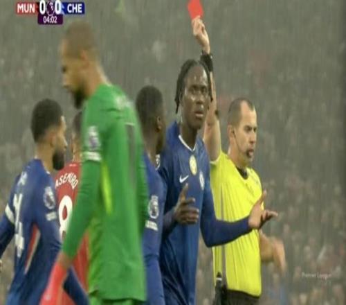 这还咋踢桑切斯染红瞬间,查洛巴无奈摊手眼神生无可恋