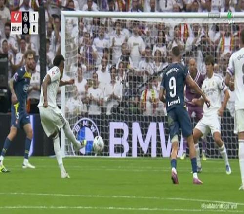 哈维-阿隆索此役选择了变阵442,冈萨洛、姆巴佩组成了双前锋,但这次变阵并不成功,皇马很难创造出破门机会。 比赛的第22分钟,米利唐禁区前得球之后,右脚突然远射,皮球划出美妙弧线之后飞入球门。值得一提的是,这是皇马此役第一次射正。