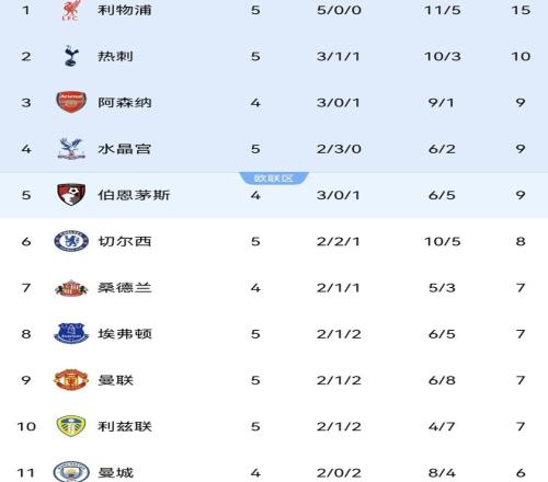 随着曼联21切尔西,热刺22,利物浦5连胜,英超最新积分榜出炉