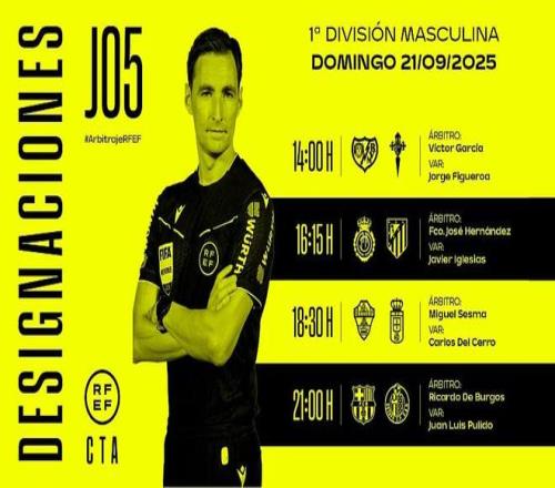 西班牙足协赛前公布了本轮西甲周日比赛主裁判人选,布尔戈斯将执法巴萨vs赫塔费。