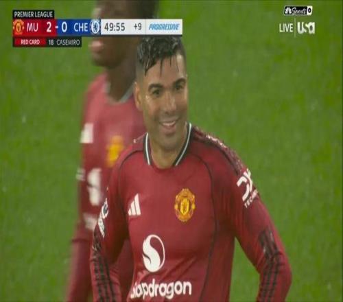 但就在人们以为曼联将取得一场轻松的大胜时,按照阿莫林的说法,「我们自己让比赛复杂化」。上半场补时第5分钟,已经身背黄牌的卡塞米罗在拼抢中从身后拉拽、铲倒安德烈·桑托斯,被出示第二张黄牌,同样染红离场。球迷戏称,这不是红蓝大战,而是「双红会」。