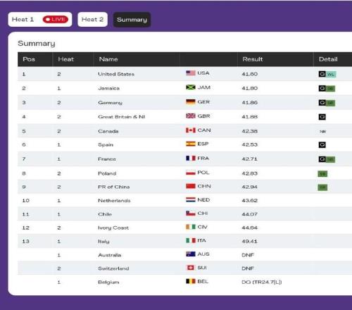 女子4×100米接力:中国队跑出42秒94赛季最佳,小组第六无缘决赛