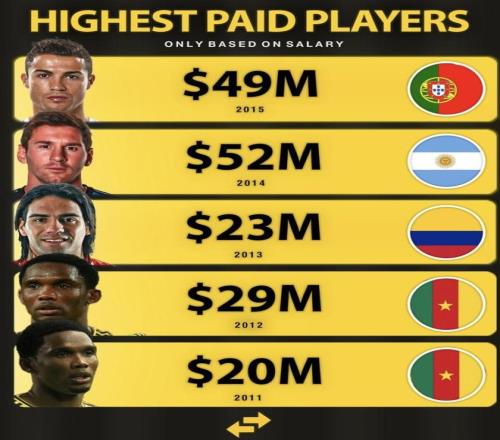 历年球员最高收入榜出炉:大开眼界中超球员竟然击败了梅西和C罗