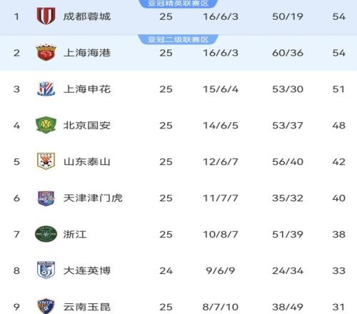 随着蓉城11绝平申花,海港送国安3连败,中超最新积分:前2同分